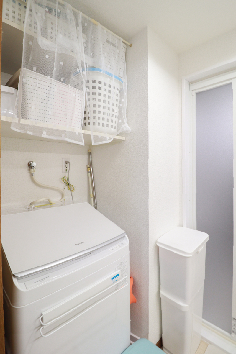 - 奥様お部屋全体だと、洗濯機まわりかな。できれば2段で洗濯機の上にも棚をつけたかったけど、一方が扉になっているからできるのかなって。こういうところもしっかり形にしてくれた。
