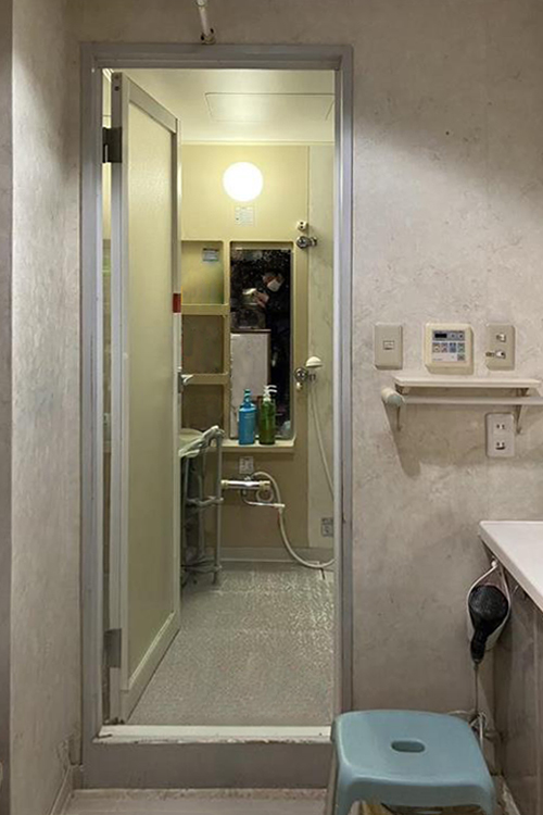 △ 工事前の浴室入口。足元の段差が高くそびえ立ちます