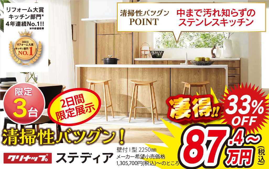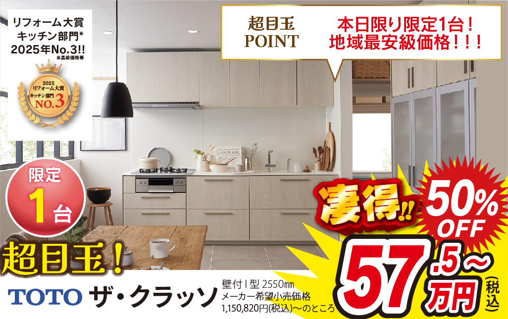 地域No.1を誇る新築住宅の供給を背景に、この地域で多くの水まわり設備を仕入れるため、そのボリュームディスカウントが実現できます。