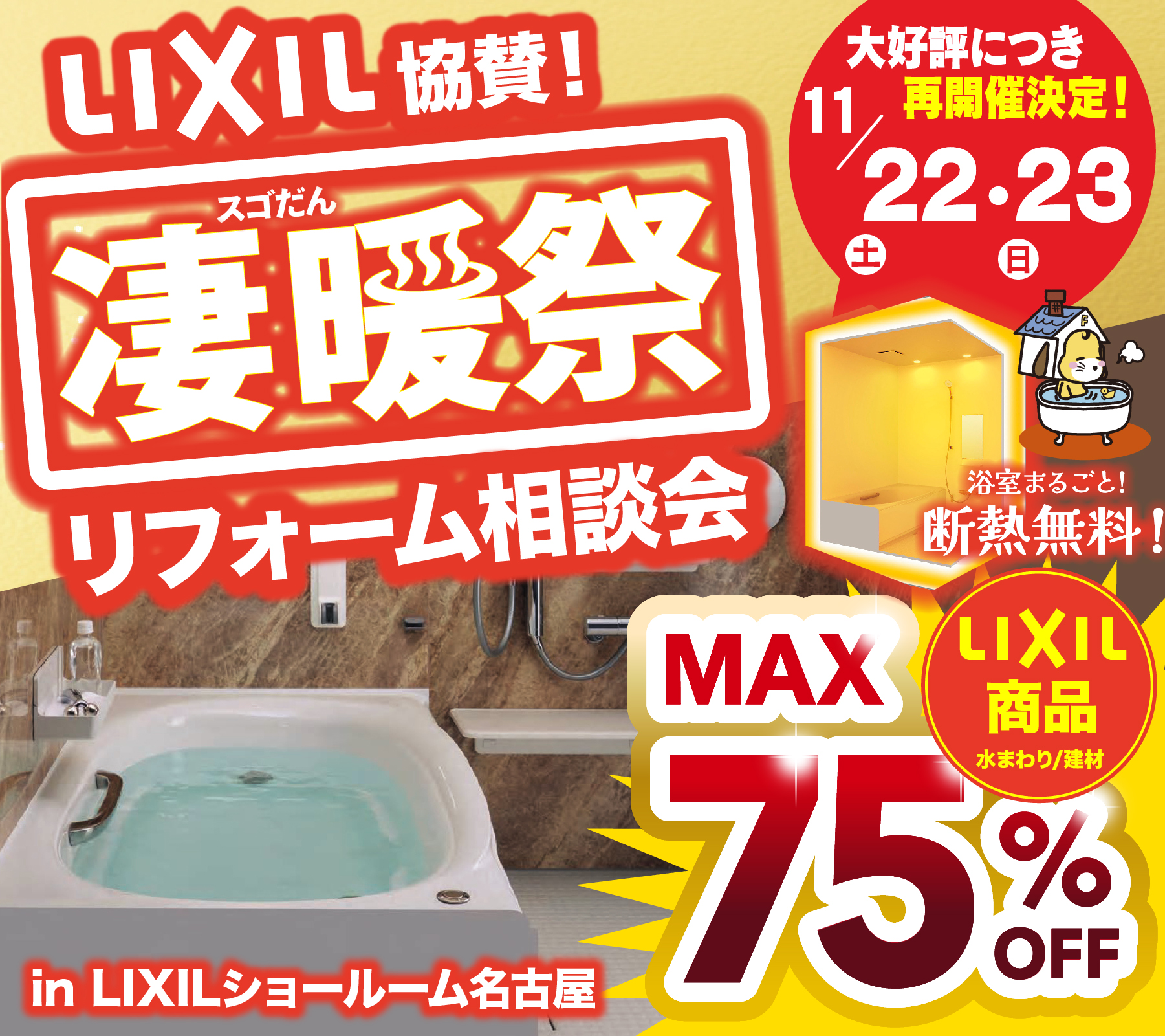 【終了】リフォーム歳末大感謝祭 ~TOTOサザナ70%オフ~