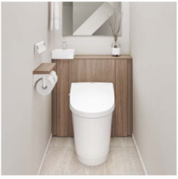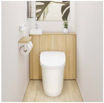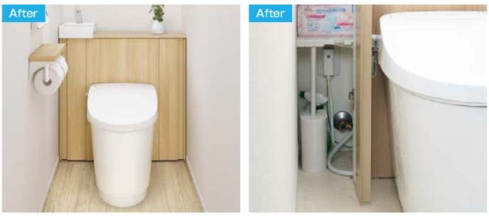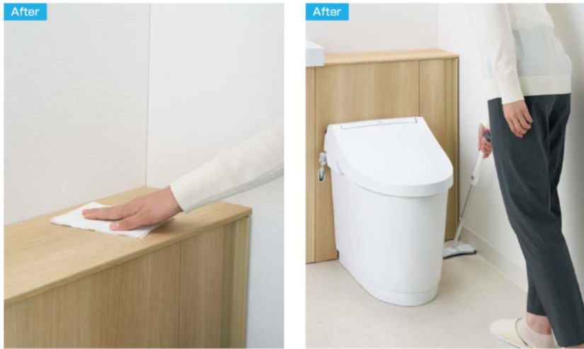 手の届きにくい便器奥をキャビネットで隠して簡単お掃除