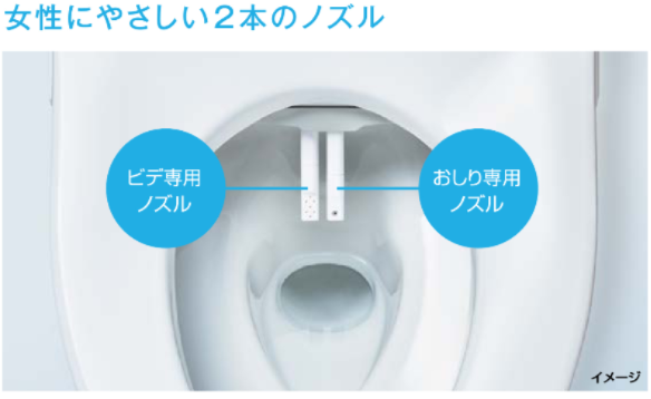 「ビデ」と「おしり」でノズルを兼用しないから安心。