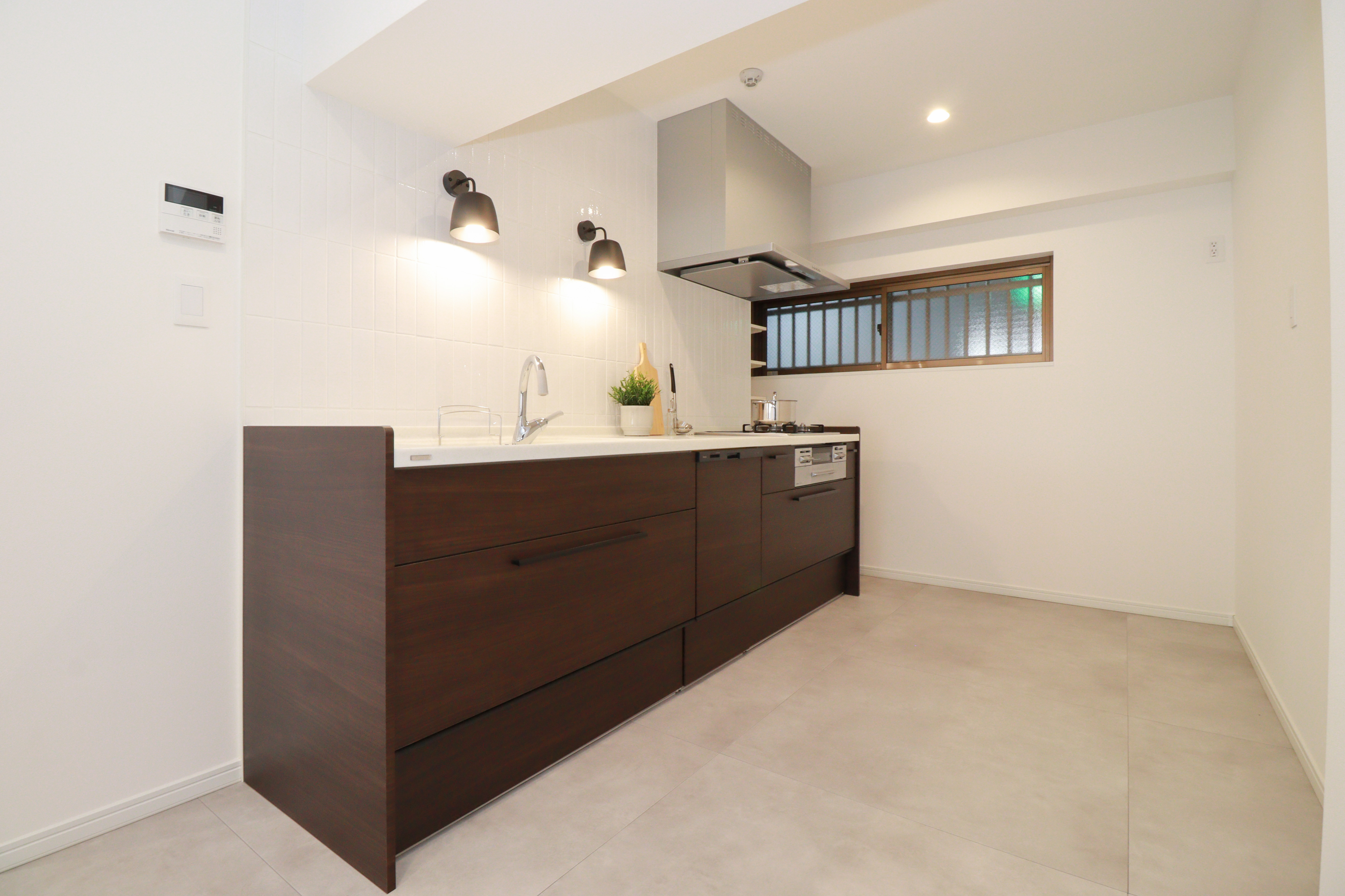 ポイントでブラケット照明も取り付けることで、洗礼されたキッチンスペースとなりました。