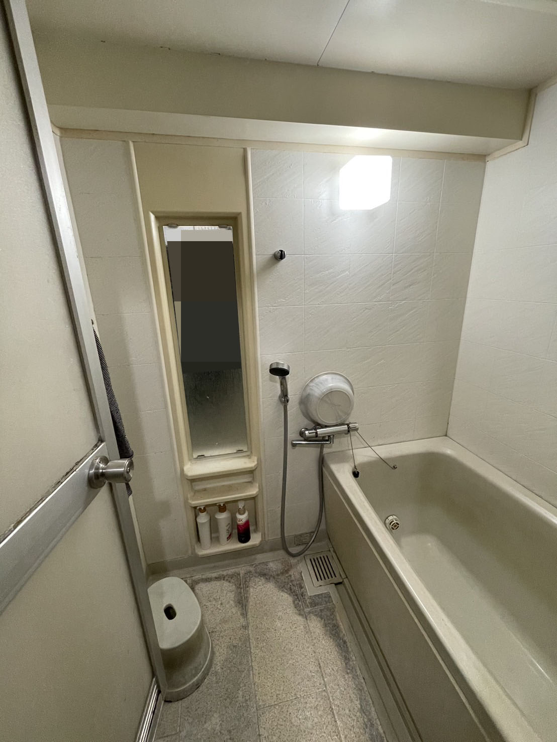 普段は小物を置く棚としてすっきり使いながら、将来、年齢を重ねて足が上げにくくなった際には、浴槽をまたぐ動作を支える手すりとしても活躍します。