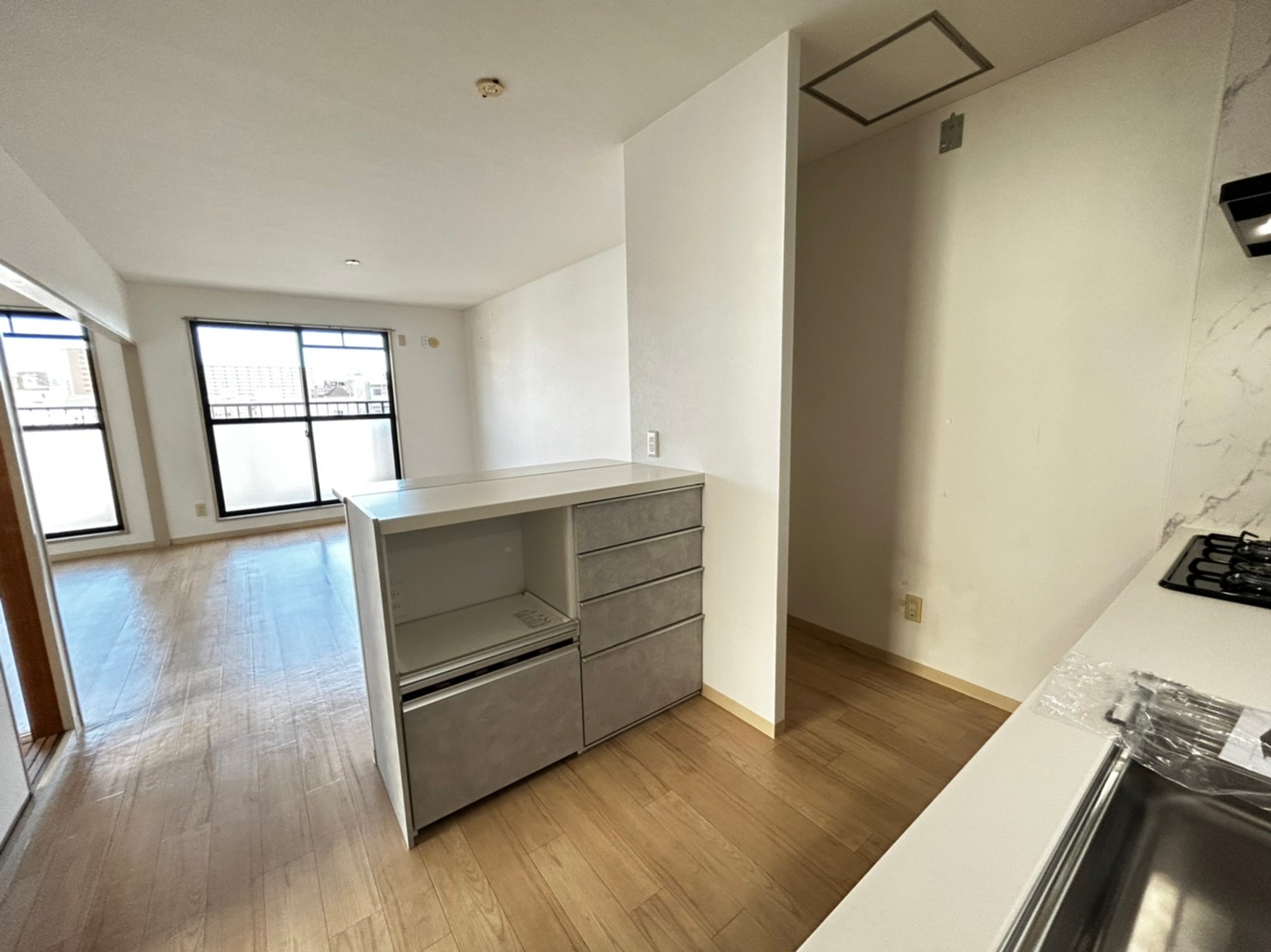 キッチンの入れ替えにあわせて、カップボードを新設し、冷蔵庫スペースも新たに設けました。